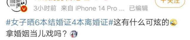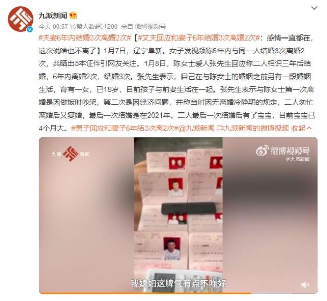 原标题:《女子晒6本结婚证4本离婚证引热议!丈夫回应:以后不会再离》