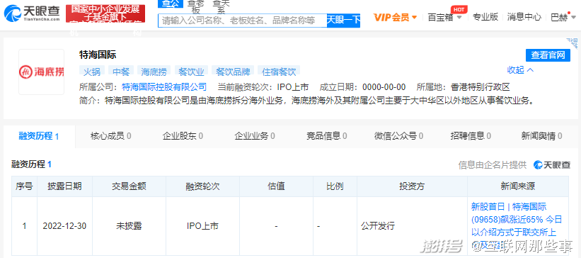 2022年12月底,海底捞旗下分公司,主打海外市场的特海国际,正式挂牌港交所上市。上市发售价格7港元,当日收盘时最终涨到了9.94港元,涨幅超过40%,表现良好。