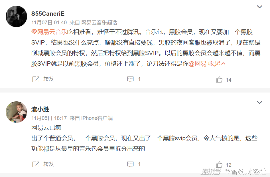 不少用户认为,新推出的SVIP稀释了多项此前VIP的权益,“吃相难看”。还有人在VIP歌曲下留言,称这原本是免费歌曲。