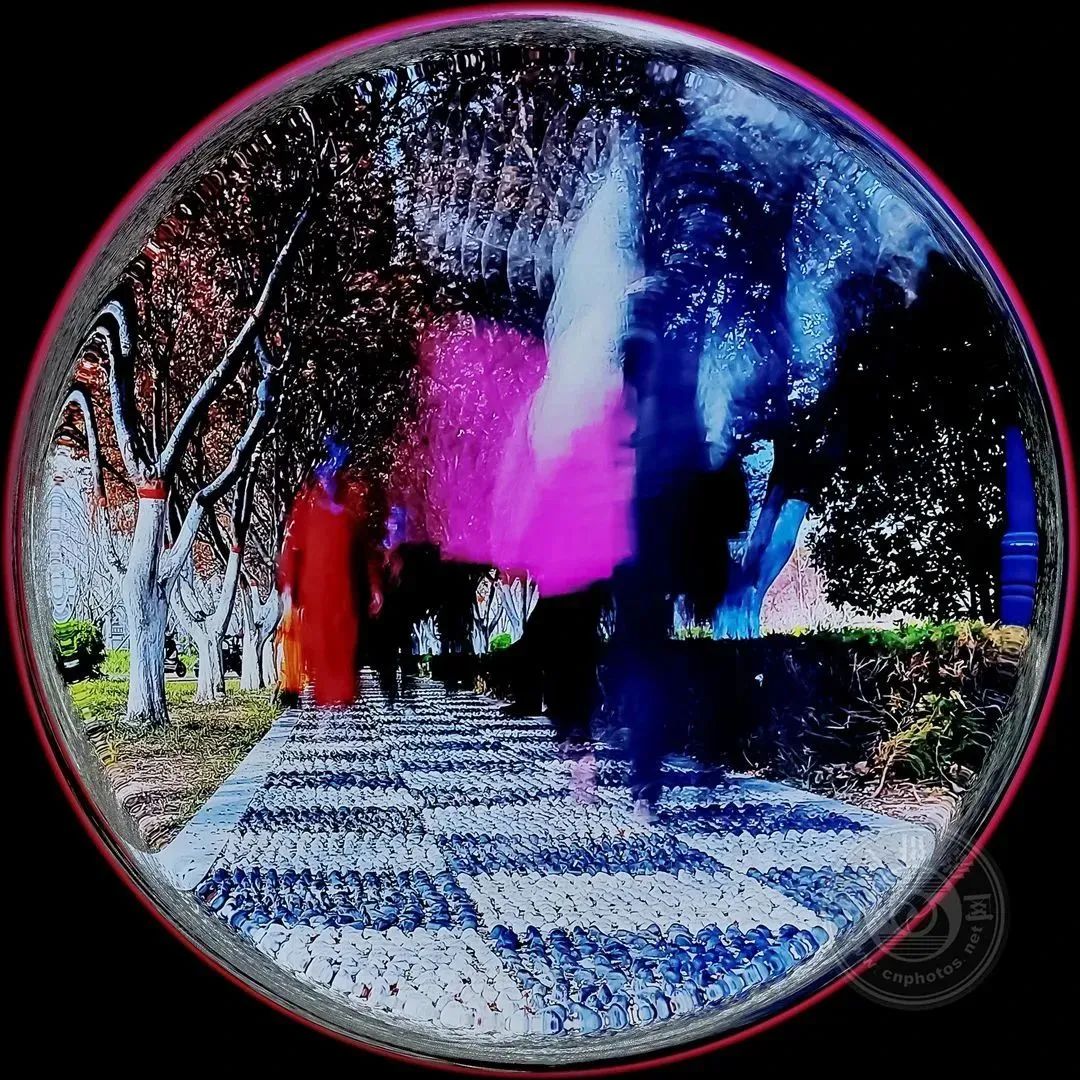 人类眼睛看不到的运动轨迹,为什么慢门可以拍摄下来?因为慢门拍到的是另一个时空的影像。人类只能看到自己时空里的静与实,而借助科技的力量,慢门不仅可以看到我们时空里的静与实,还可以看到另一个时空里的动与虚。这说明了平行时空的存在,并且发生了量子纠缠。大千世界,芸芸众生,我在三维的世界里,你在N维的时空里,我们彼此纠缠,但又擦肩而过。由此,我又观察了各种不同镜面的反射,看到了不同时空不同影像的叠加,我觉得这是平行时空的另一种表现,这激发了我创作的热情,于是就有了这组手机拍摄的作品。