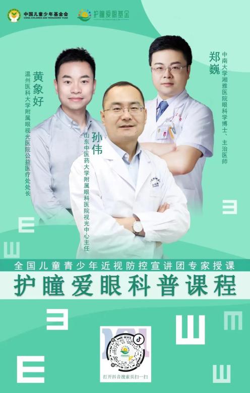 家庭是孩子成长最重要的环境,孩子的视力健康离不开家长的教育和引导,这里提醒广大家长有必要学习一些科学的近视防控知识,比如中国儿童少年基金会护瞳爱眼基金邀请全国儿童青少年近视防控宣讲团专家参与策划与录制的眼健康科普宣教视频——《护瞳爱眼科普课程》。