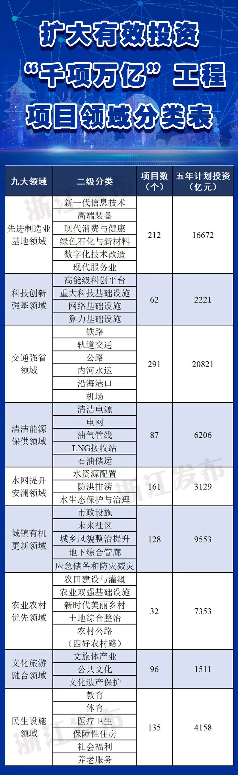 浙江开启“千项万亿”工程,每年滚动推进省重大项目1000个以上,每年完成投资1万亿元以上