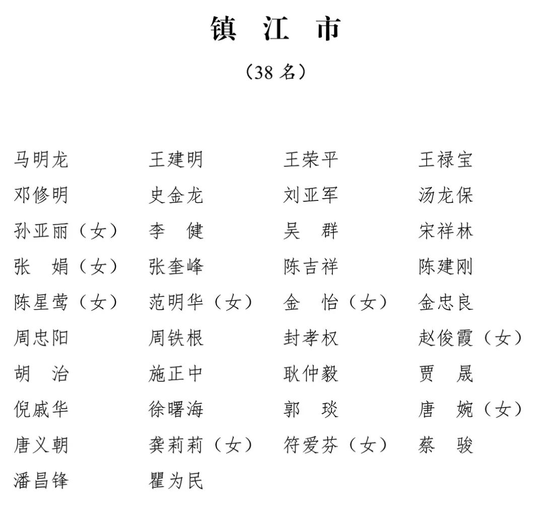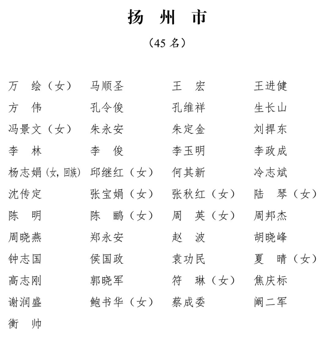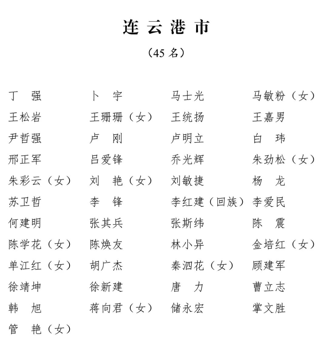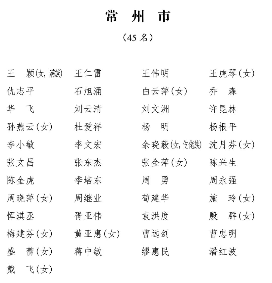 江苏省第十四届人民代表大会代表名单公布