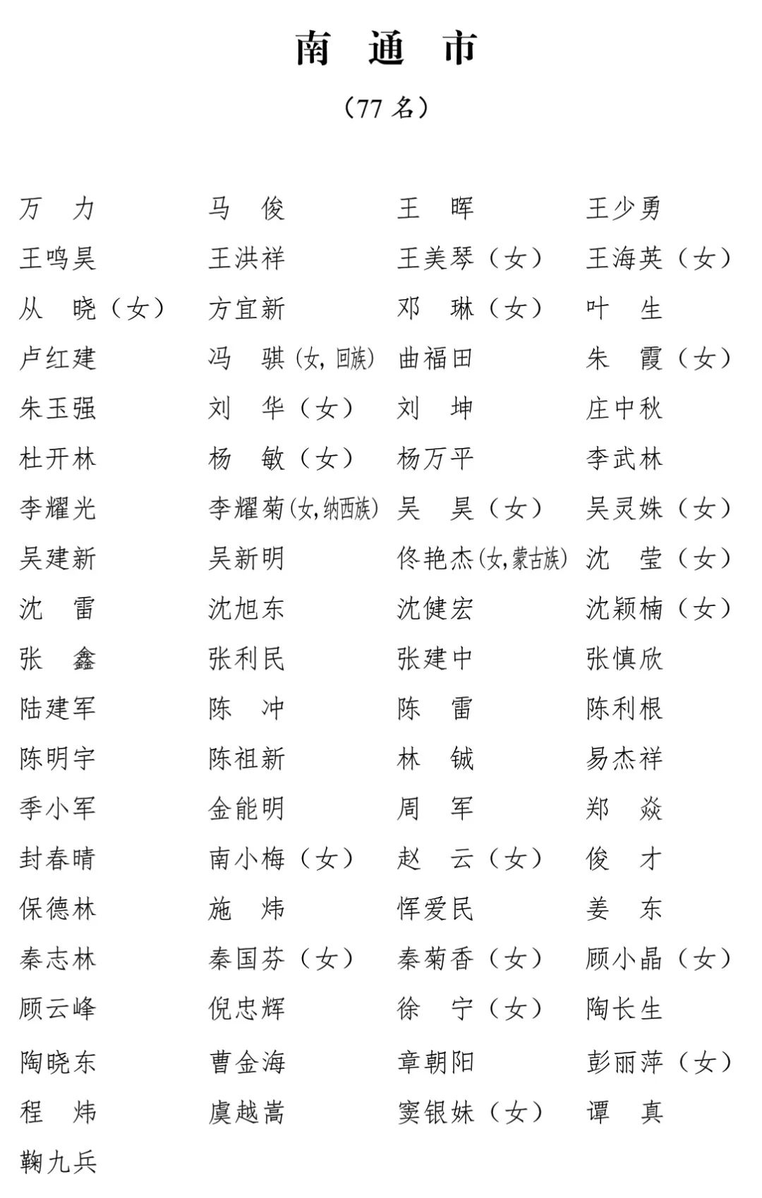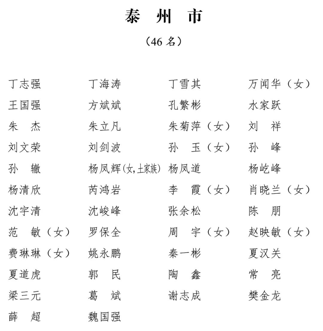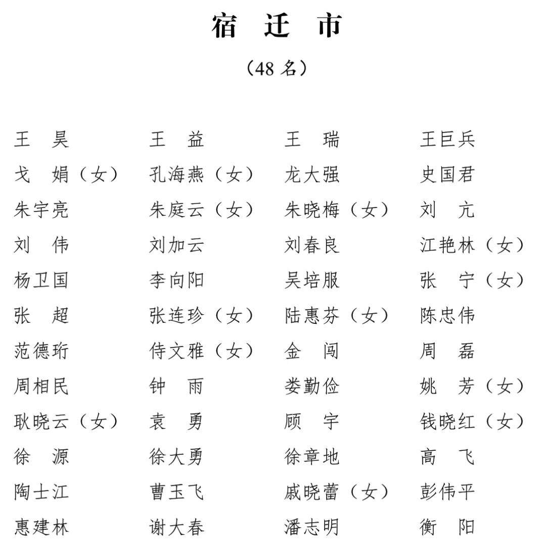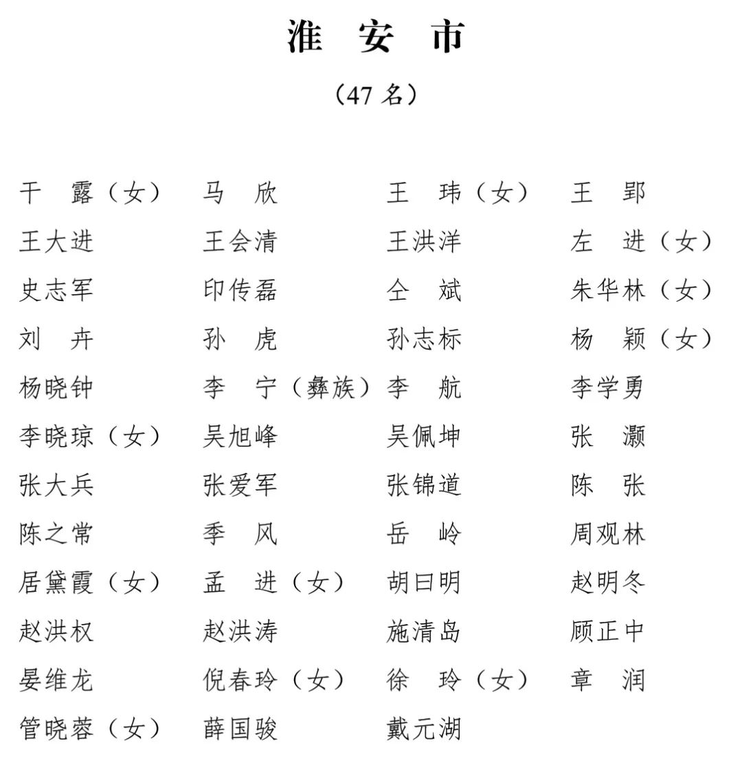 江苏省第十四届人民代表大会代表名单公布