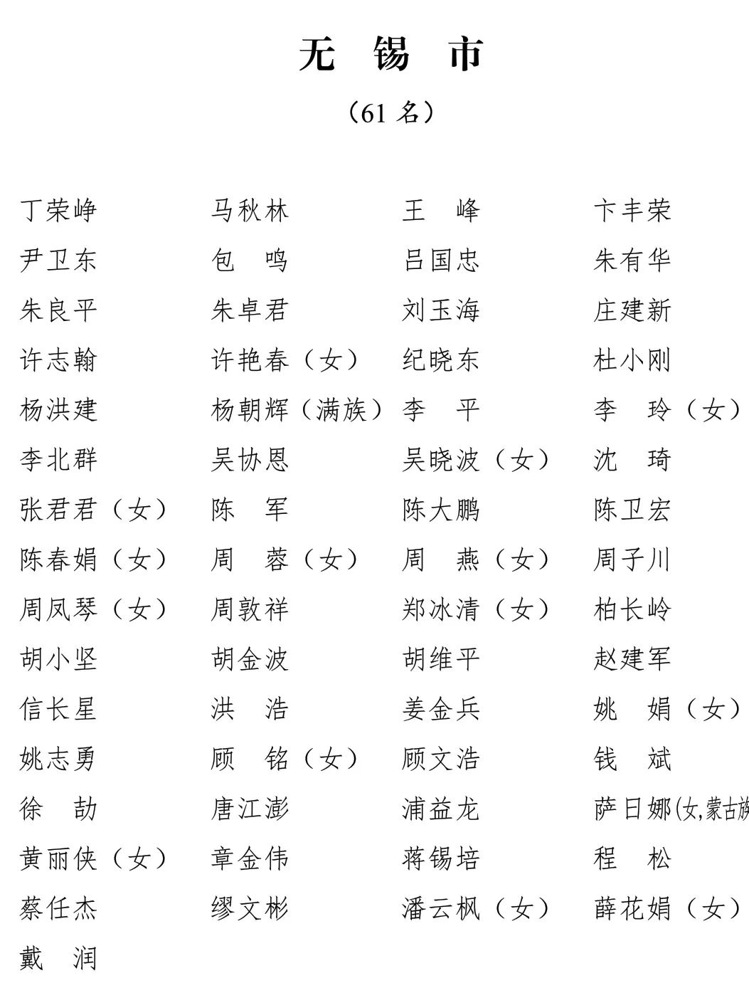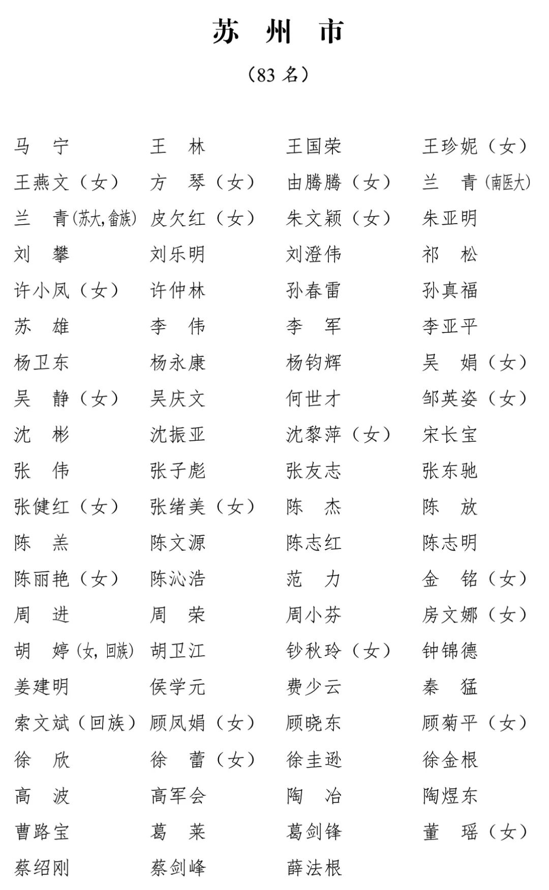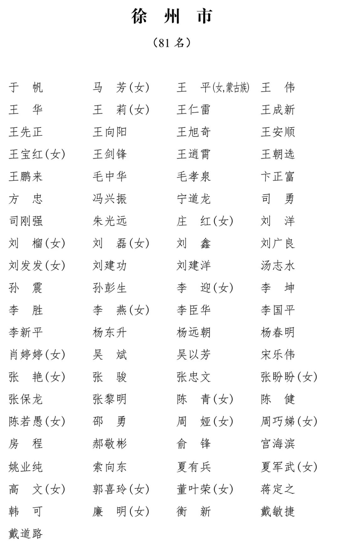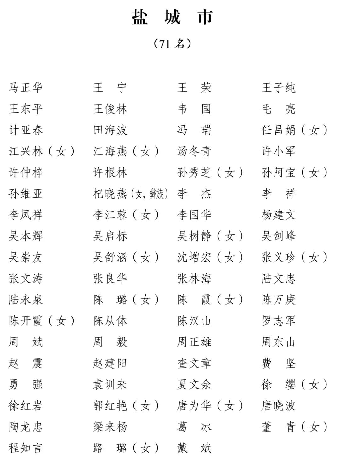 江苏省第十四届人民代表大会代表名单公布
