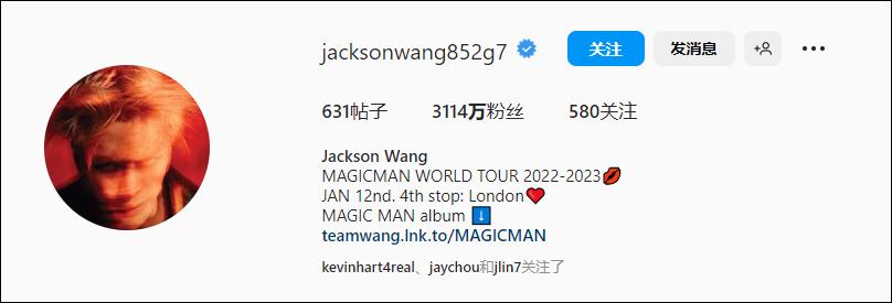 王嘉尔在国外拥有广泛的粉丝群体,其社交媒体Instagram粉丝数量达3114万,他还成为了首位在美国科切拉音乐节主舞台上表演的中国SOLO歌手。