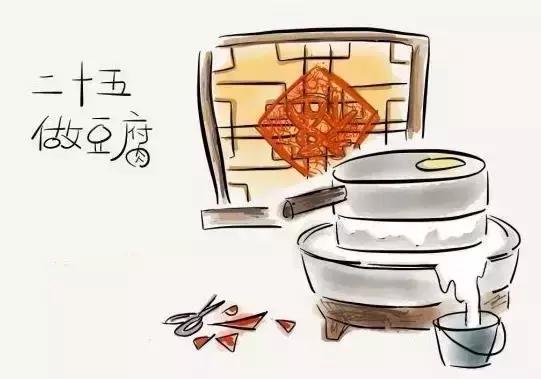 二十三祭灶官,二十四扫房子,二十五磨豆腐,二十六去割肉,二十七杀猪鸡,二十八蒸枣花......