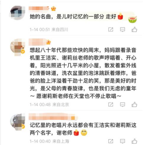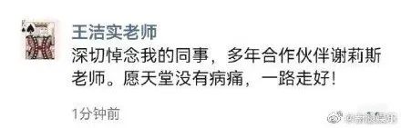 谢莉斯搭档王洁实老师也在社交平台悼念友人离世: