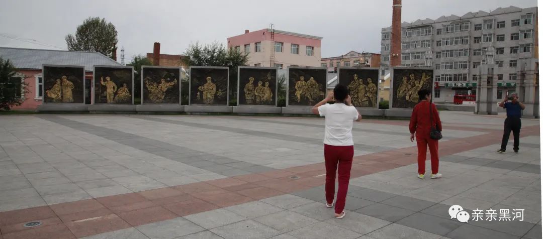 在《红灯记》广场浮雕前拍照留念《红灯记》、《革命自有后来人》这一反映“北满”地区抗日斗争故事的电影和样板戏,是对黑河地区抗日斗争的极好宣传,是黑河人民的骄傲,是任何广告效应所无法替代的,更是黑河的一个金饭碗和金字招牌。《智取威虎山》原型地牡丹江和《沙家浜》原型地常熟能把红色文章做强做大,我相信黑河和五大连池也一定能将《红灯记》的内在精神和外延文化深入挖掘并发扬光大,为黑河的社会文化和经济发展注入动力。