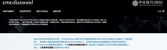银行官网截图中信银行(国际)客服人员表示,这是该行基于香港与内地恢复通关,针对跨境客户做出的优惠活动。目前已经有内地客户进行咨询。