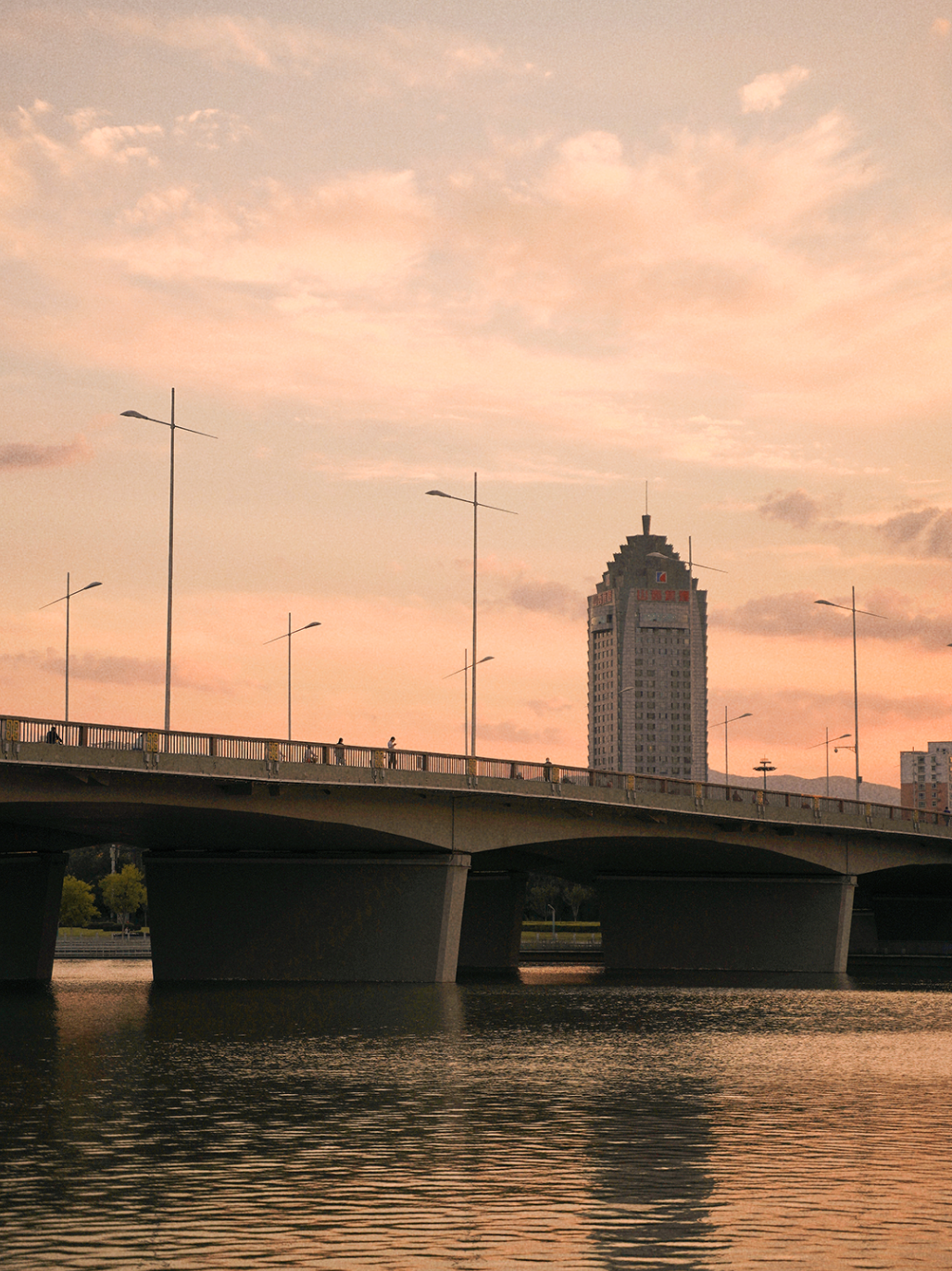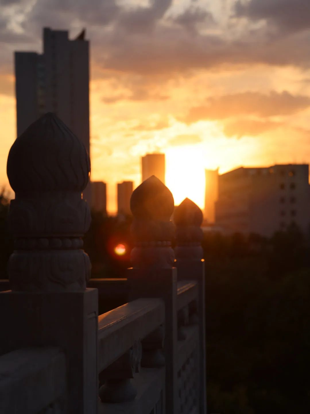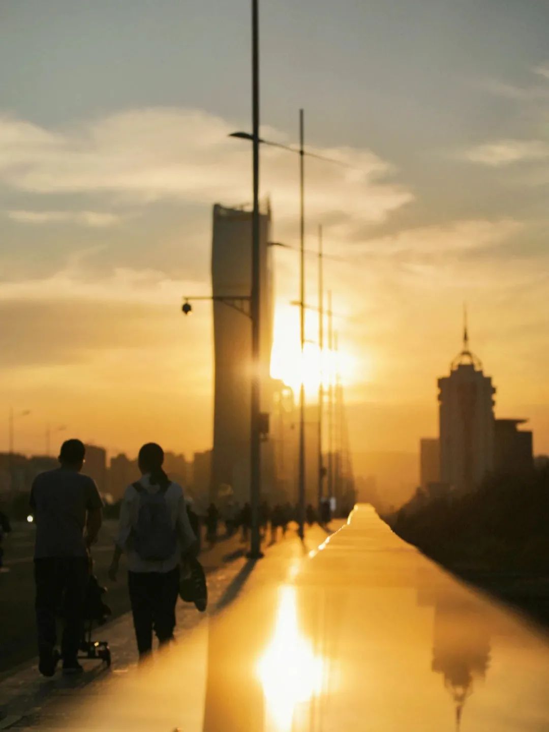 黄昏拉长了影子,延长了路旁共享单车的身影。1路公交车的播报声里装载着无数上下班的时光,每一个为了城市建设而奔波的身影被夕阳拓印在车窗上,余晖像远古的神一样慷慨地将亮芒变成了柔光。