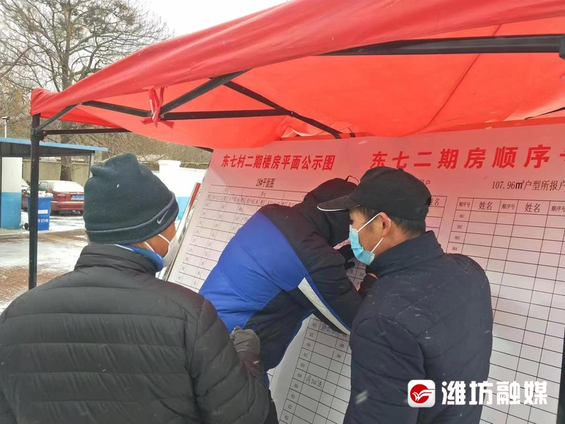 潍坊日报社潍坊融媒讯 瑞雪兆丰年。1月14日小年,清早迎来了新年的第一场雪,对这里居民来说也迎来了一个喜庆的日子,因为他们收到了一份日夜盼望的新年大礼——喜分新房。潍城区北关街道东七社区、前姚社区以及森合阳光项目选房分房处喜庆热闹,大家纷纷相聚于选房分房现场,在热烈的气氛下开启分房仪式。