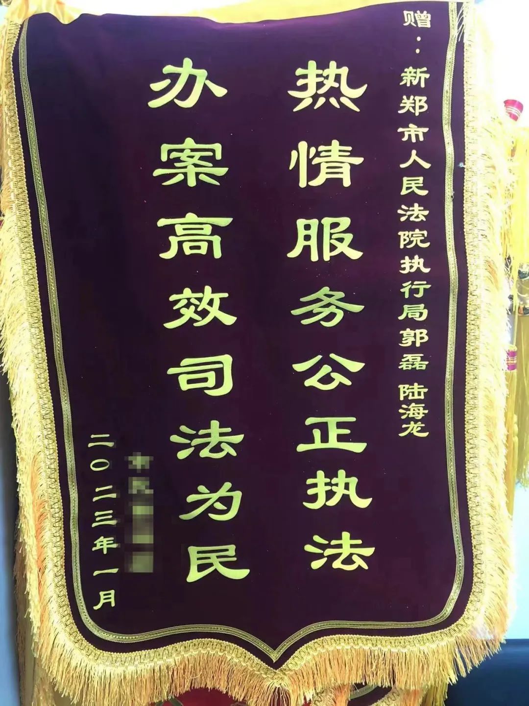 新郑法院集中执行持续发力 百姓送来锦旗表心意