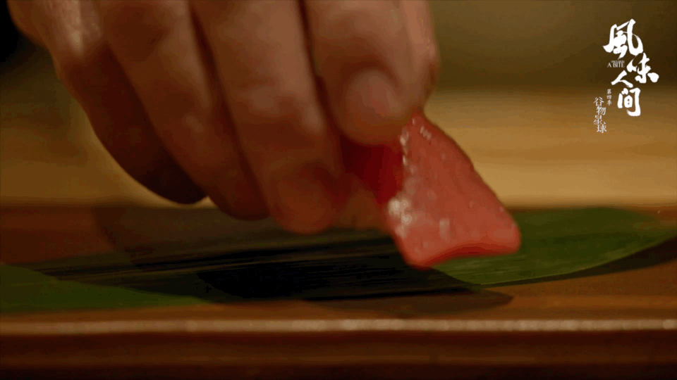这时可以清楚地看到外围的米粒被捏得非常紧致,而内部的米粒则比较松散,中间存在很多空气。这样的寿司饭在客人用手拿起的时候不会松散,而入口时又可以轻巧地散开,形成所谓的“崩裂感”。米粒与配菜可以充分融合,行云流水,毫无阻滞。对于寿司内部是这样神奇的结构,小野二郎本人之前也木有想到,美妙的事情就在苦练几十年之后自然而然地发生了。