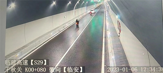 1月12日14时40分,在S29临建高速千岛湖方向於潜服务区,民警检查拦截了一辆从安徽高速驶入浙江杭州的摩托车。