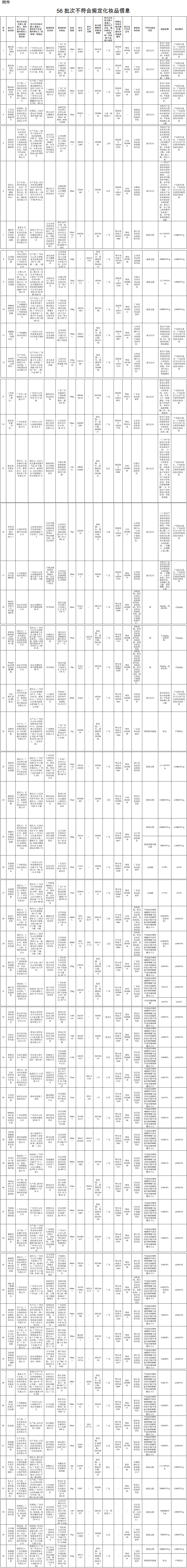 记者了解到,此次通告的56批次不符合规定的化妆品中,多为染发、洗发护发、防晒和牙膏类产品,抽检发现的主要问题是成分比对、菌落总数等不符合规定。