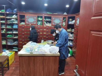 诃额伦社区卫生服务中心工作人员为患者配制中药
