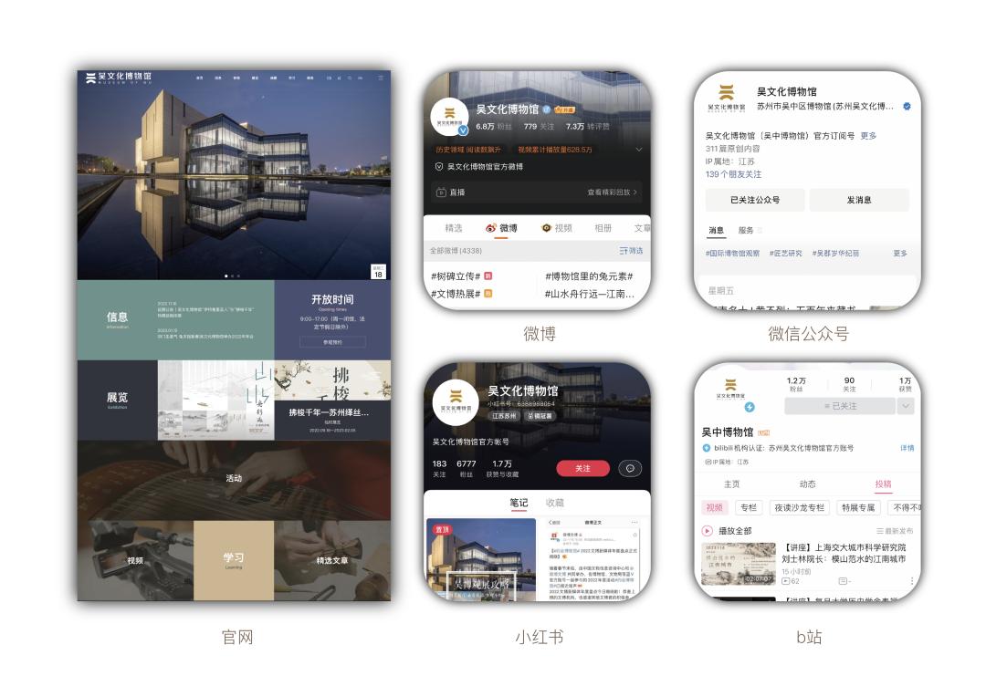 一年以来,吴文化博物馆在宣传方面有主流媒体首发报道300篇/次;新浪微博全年发布博文1648条,阅读量2063万,粉丝累计6.8万;微信公众号阅读量68.7万,粉丝累计10.1万。哔哩哔哩、小红书、澎湃号、人民号等多个新媒体平台,累计阅读量/播放量584万;全年讲座/沙龙/活动直播75场,观看总量达400万次,官网的线上服务覆盖约2500万人次。