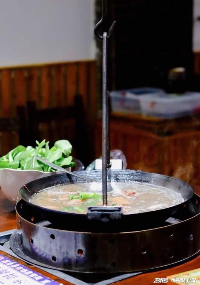 等到中午,四起的炊烟勾起肚里馋虫,别急,龙骨野藕吊锅马上登场,热乎乎的一碗汤下肚,一下子就熨帖了整个身心。