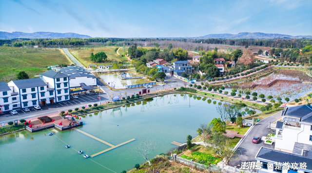 没有城市里高楼林立的遮挡,充满鄂南民俗风格的各式建筑一秒就带你融入水墨画似的江南画卷,眼前是白墙黛瓦,耳边是鸟语虫鸣,还有无动力乐园让你寻回童心。