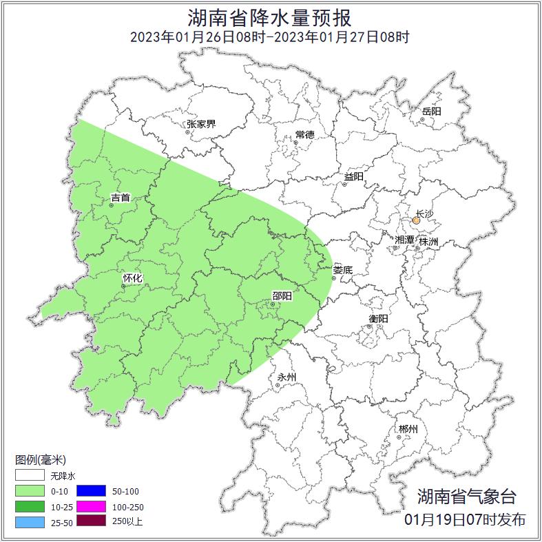预计26日晚至28日(初五晚至初七),受新一股冷空气影响,又有一次降温降水过程,其中27日湘北高海拔地区有雨夹雪。