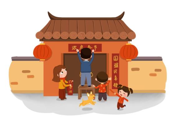 春节贴福字,是中国民间由来已久的风俗。春节贴“福”字,寄托了人们对幸福生活的向往,也是对美好未来的祝愿。“福”字究竟该怎么贴没有统一的标准,据说大门应该正着贴,房内、柜子等地方可以倒着贴意味着“福到了”。春节贴春联,也是传统习俗之一。春联也叫“门对”“对联”“对子”,属于楹联的一种,是一种独特的文学形式。百姓春节贴春联的民俗从明代才开始盛行,潮流发源地是南京。现在江南地区百姓讲究在大年三十上午贴春联。