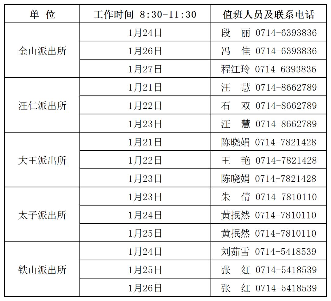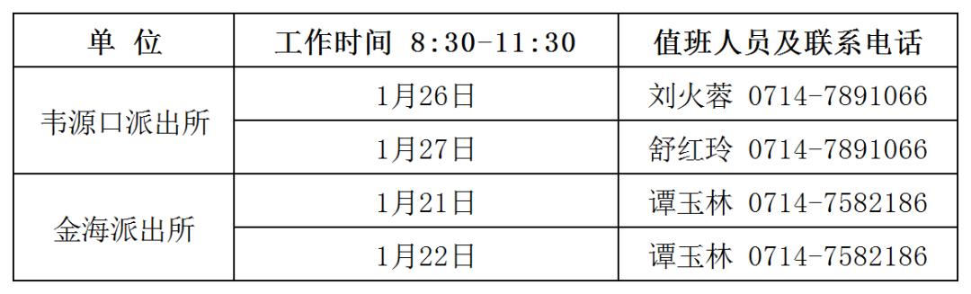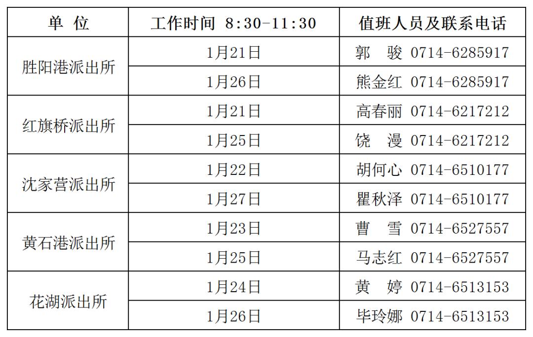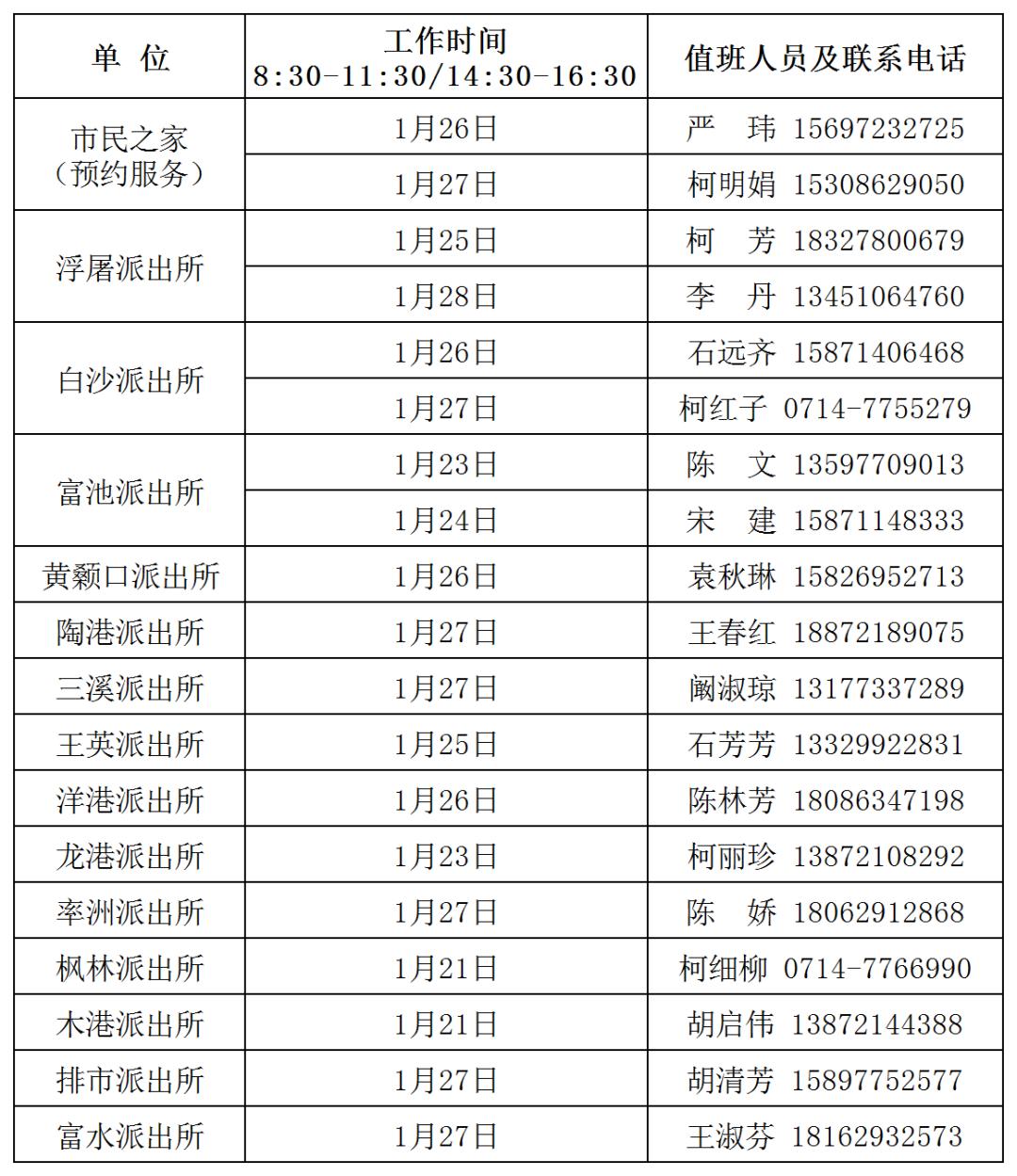 附:全市公安户政窗口值班表,有需要办理相关业务的市民可进行咨询和预约。