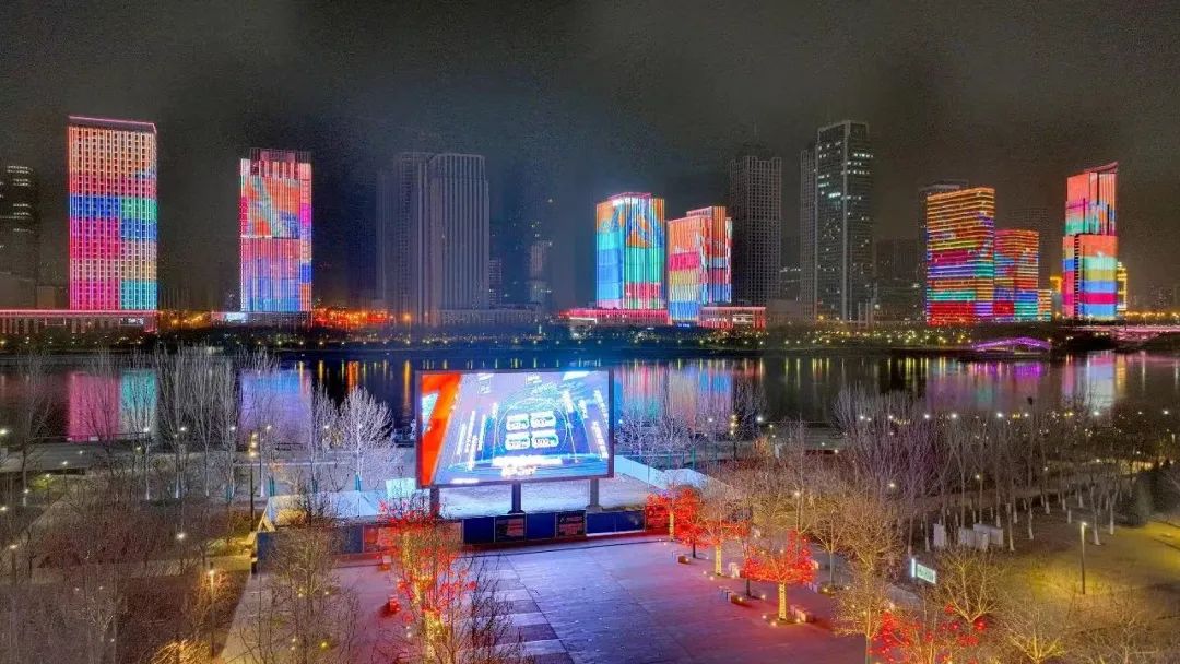 背后是竖屏直播市场的竞争愈演愈烈。据悉,1月16日,微信视频号获得独家竖屏直播兔年春晚的权限,而抖音、快手等短视频平台获得了横屏转播权。最后,值得一提的是,通过“百城千屏+云听”双平台同步直播,观众可在全国约500个城市的文化广场“百城千屏”8K超高清公共大屏上,获得沉浸视听效果。如下图所示,天津首块8K超高清大屏是“百城千屏”布局中的首例,于1月21日除夕夜首次亮相试播。