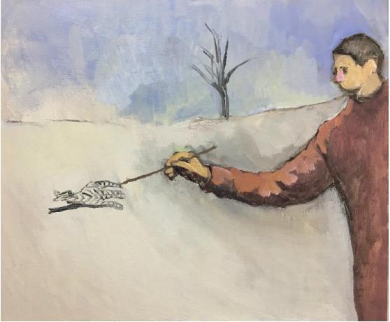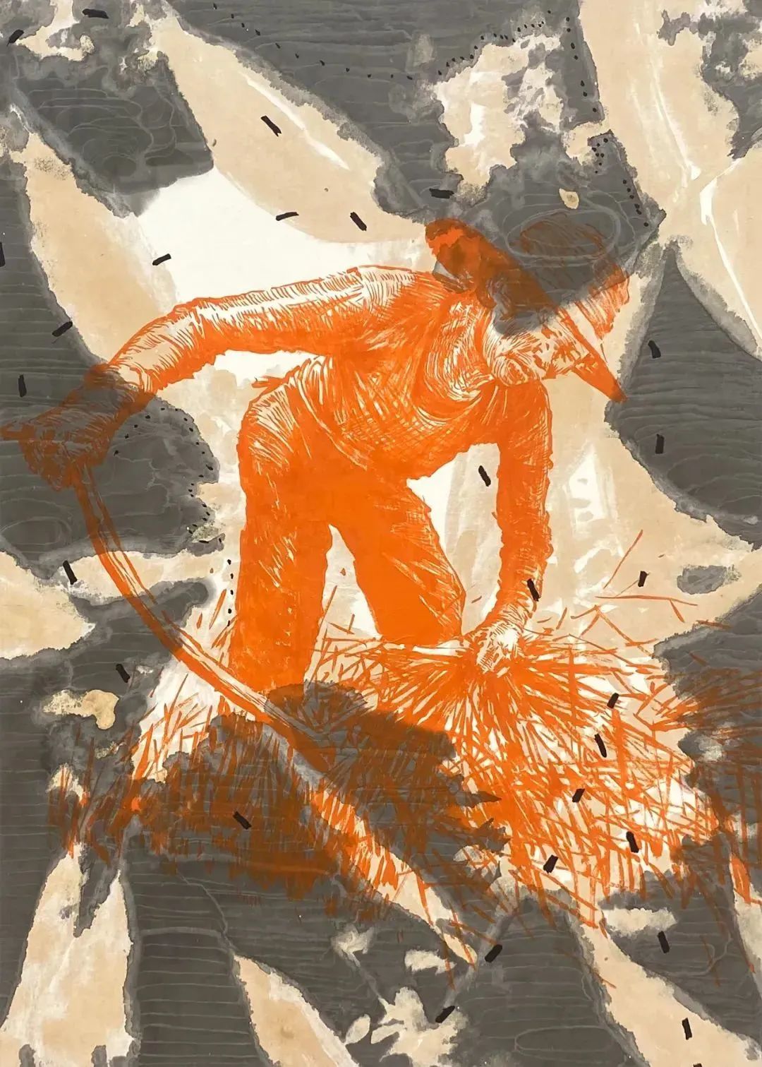 ▲ 谭平,《快走》,79×110cm综合材料,2022年4月1日