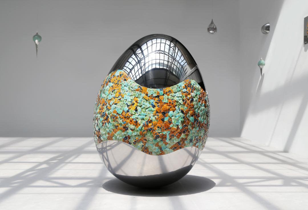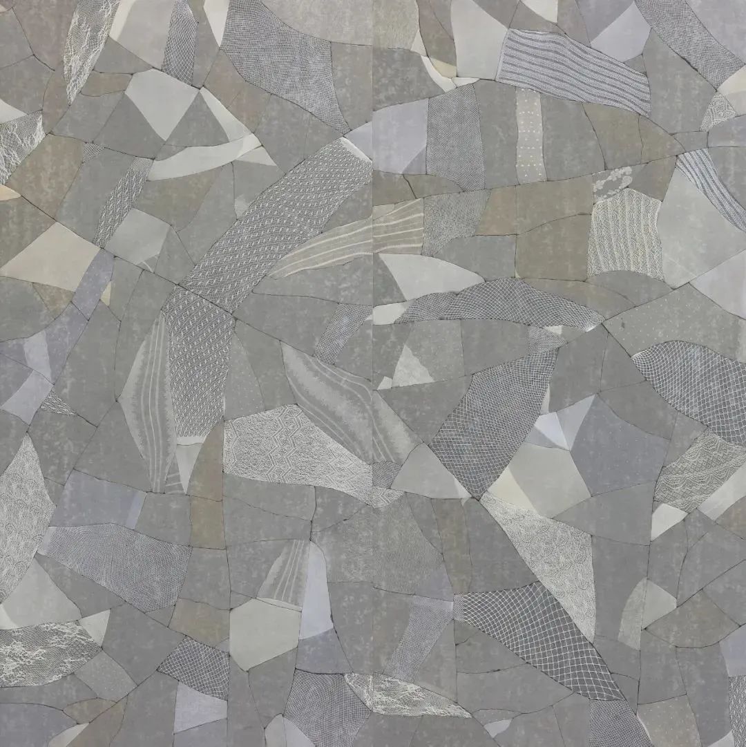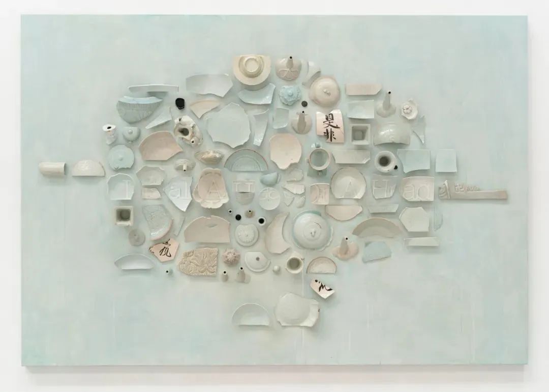 在他今年的新作中,艺术家将购自民间文物交易平台的古代瓷器碎片在特定的视觉规律下排列,在和谐而令人愉悦的色彩与几何构成中,“瓷”自身的社会属性被暂时剥离,瓷片只安静地落于画布之上,向观者显现物的本源状态。