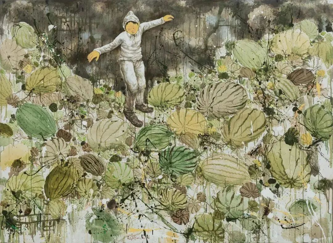▲ 项恺阳 | 鸡鸭鹅 | 2022木板上水彩&丙烯 | 100x80x3.3 cm