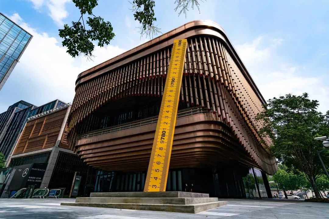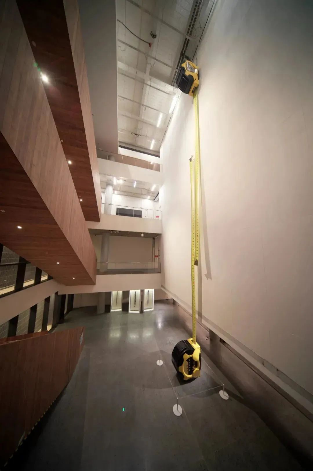 在《我是我自己的结果》中,两把装有驱动电机的巨型卷尺以自上而下和自下而上的方式,彼此丈量各自的尺度。放大了的标尺失去了原本作为“尺”的度量功能,用标准的象征物测量标准,真正标准的定义到底在哪里?它不禁发出疑问,标准是否还存在?科技呈现的景观并不全然是真实,假象也无处不在。