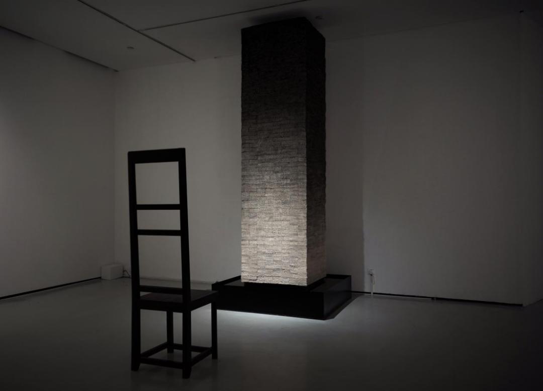 ▲ 唐勇《坚固的碑》草纸、墨水、钢板、机械振动设备