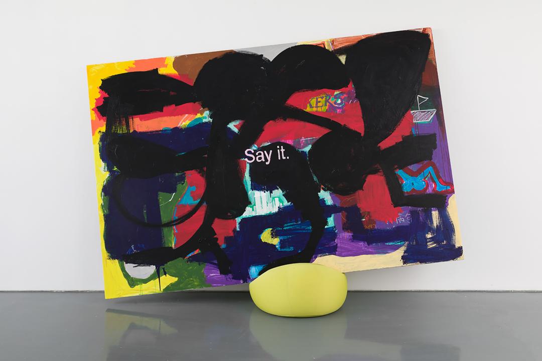 ▲ 谭天,《202230020010/1》,2022布面丙烯、沙发球