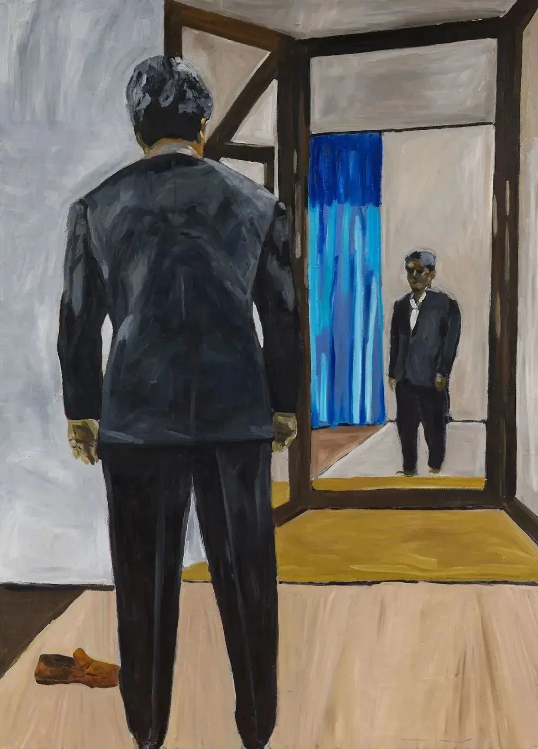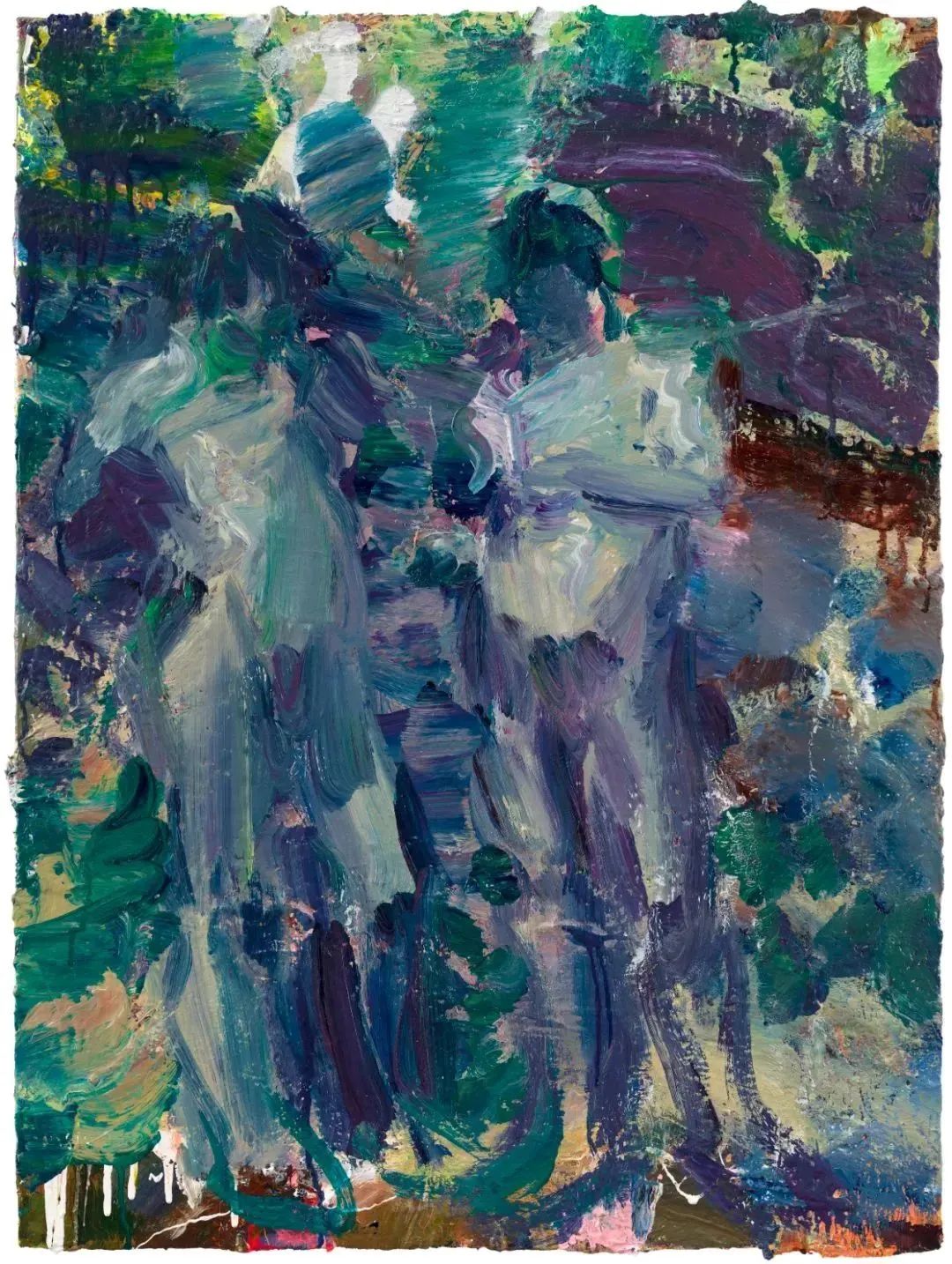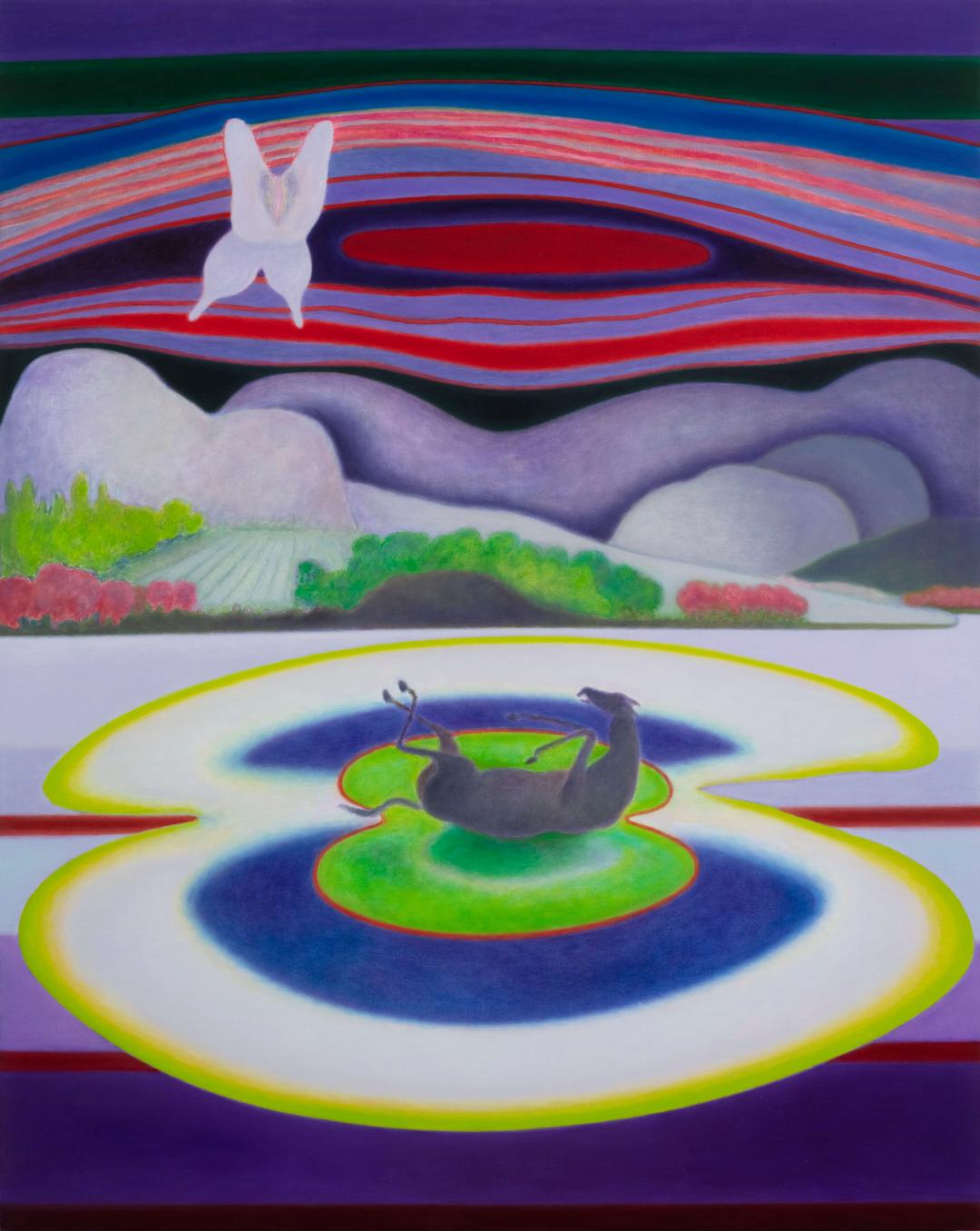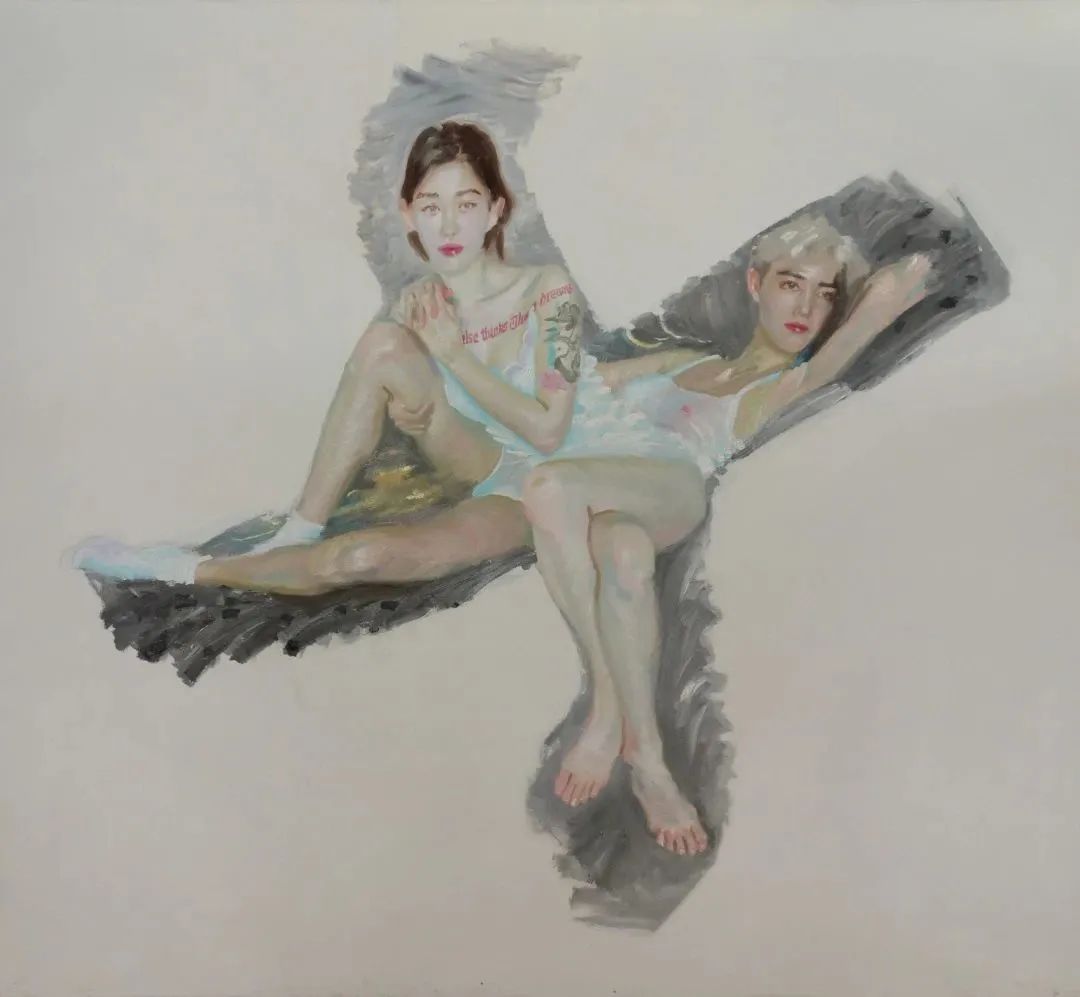 在艺术家新作中,人物展现出一种“中性的姿势”。弯曲的人体被放置于未知的背景中,我们既无从了解它们为何出现在此,也无法预知其去向。在某种意义上,我们可以说它们是悬置的,剥夺了激情的空洞姿势。