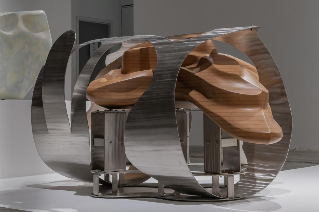 ▲ 汪建伟,《行于泥浆 No.8》,2022不锈钢、木材、氟碳漆,165L × 108W × 78H cm