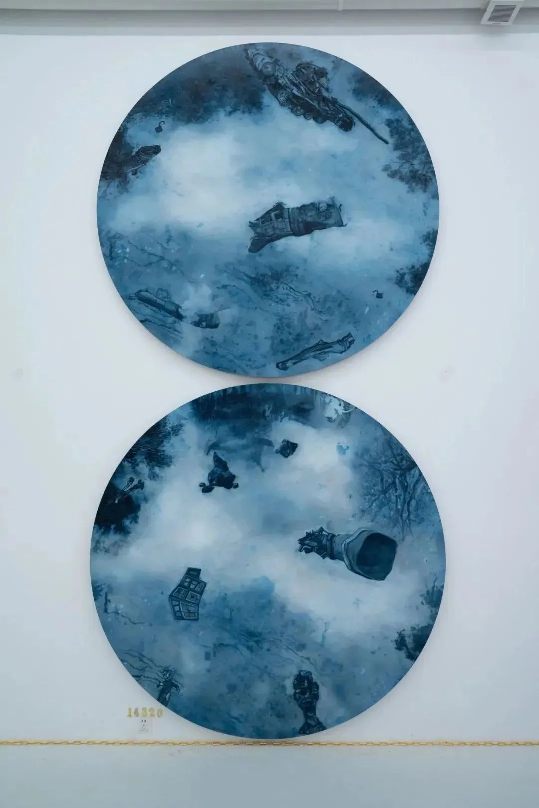 叶剑青的作品是两幅圆形绘画,他根据“堆叠”主题和其他艺术家作品信息重置一个倒影,其中的图式既是真实的镜像,又是虚拟的幻影,映现出当下世界纷繁复杂,激烈突变的场域。或许不可承受之轻,却充满着生命的重量。