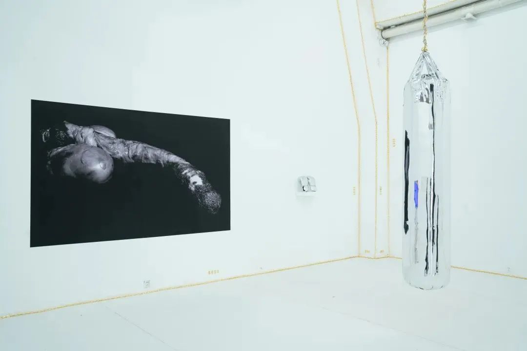霓虹装置《扭曲 II》(2020-2022,白色霓虹灯管,变压器,400 x 560 x 600 cm,装置尺寸可变),艺术家通过截取和提炼当代景观的图像和造型,一方面强化了塑造当代心理的物质形式,与此同时,这些去功能化的日常废弃材料也被残酷地孤立为兼具多重矛盾的当代遗迹。作品生产所需要的高强度劳动,在白盒子里“复原”材料成为实践的重点,也成为反思社区、城市与事件间紧张关系的起点。
