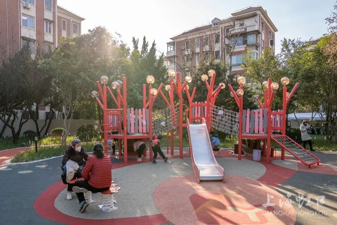 这处“童趣花园”是曲阳路街道于2022年底打造完成的一处儿童友好公共空间。