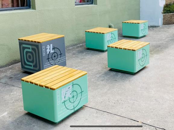虹口实验学校中学部出入口转角增设了科普坐凳,这些坐凳以学校特色学科“射箭”为主题进行设计,“猎、战、礼、体、娱、教”六张主题科普坐凳,不仅展示了弓箭的用途,也让孩子放学后能在此与同学、家长拥有轻松愉快的交流时光。