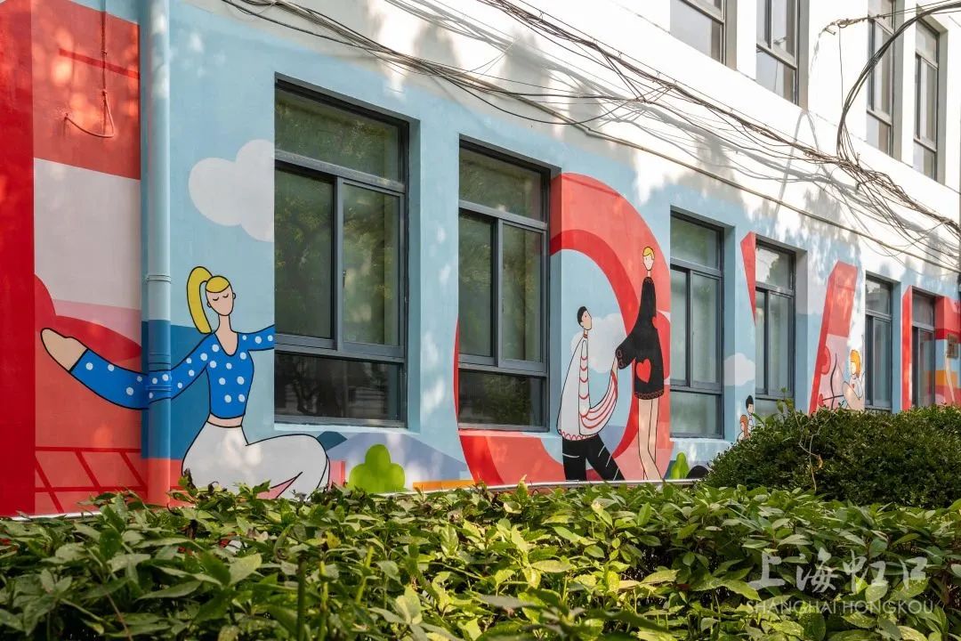 虹口区第四中心小学出入口围墙打造了“HAPPY HOME”墙绘,为孩子们的回家路营造温馨愉悦的氛围。