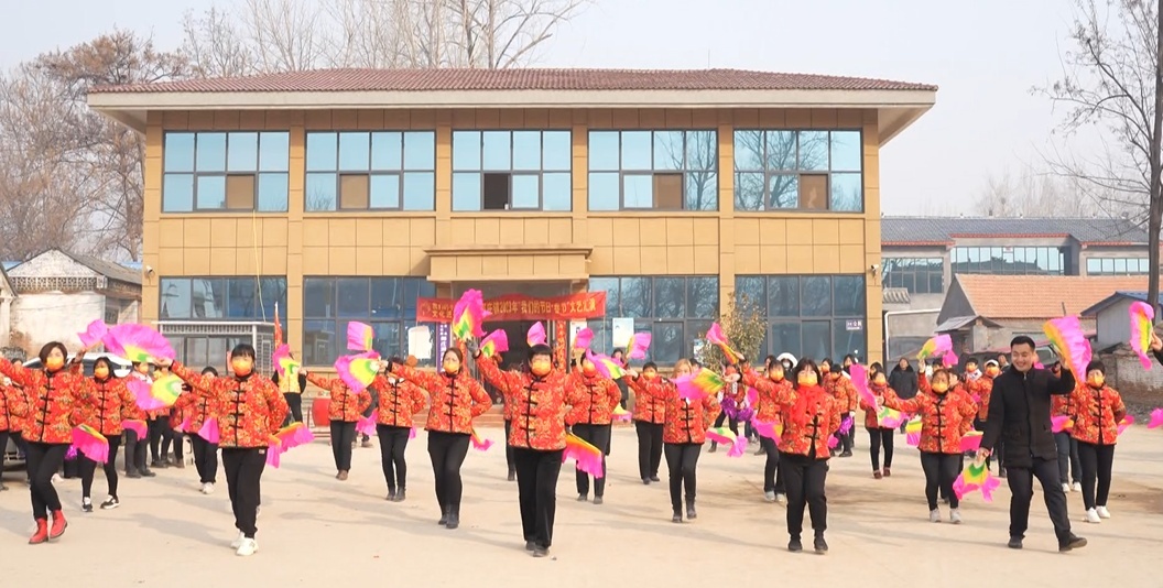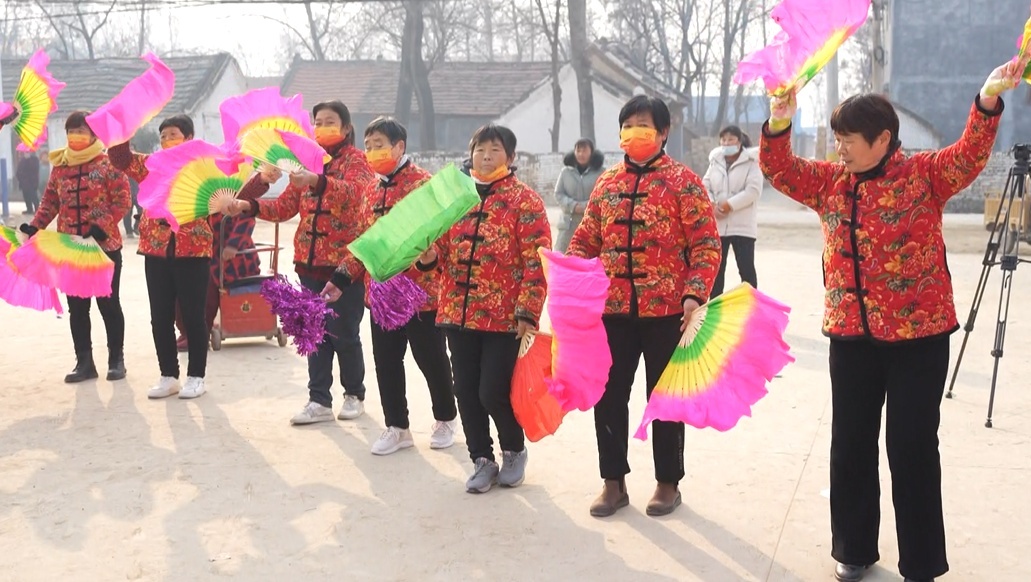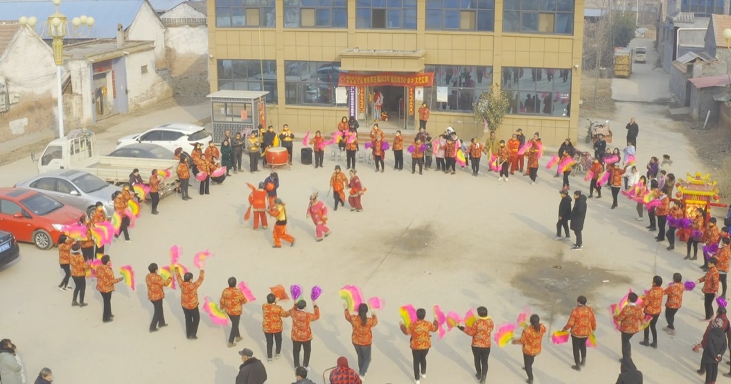 在曹县邵庄镇西李寨村,村民们自发来到广场,跳起欢快的秧歌,唱起盛世的欢歌。