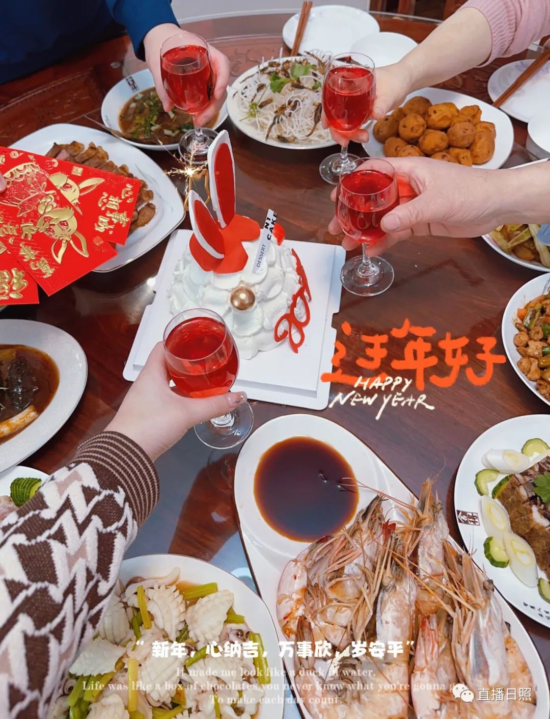 祥虎辞旧岁,瑞兔报春来。在这万家灯火阑珊,华夏神州喜气洋洋的时刻,全家举杯畅饮,共享团圆之乐,幸福呀!我和妻子在日照工作也13年了,深深爱上了日照这座滨海城市。有爱人爱,有父母爱,有儿子爱,有日照这座美丽的城市相伴,幸福。祝父母,妻子,儿子,同事,新年快乐,兔年大吉大利。伟大的祖国,繁荣富强。@wang