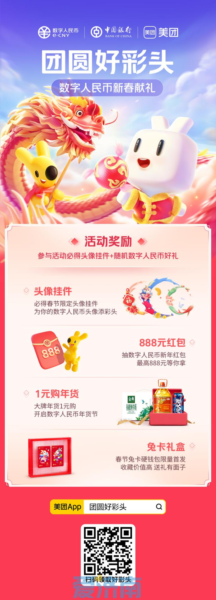 比如,1月至3月,中行济南分行携手美团平台举办数字人民币获客活客推广活动,春节期间围绕数字人民币IP“圆圆”形象,推出“团圆好彩头”活动。在美团首页搜索“数字人民币”可以参与团圆好彩头活动,成功参与好彩头活动的新用户,可获得春节专属好礼(如:不低于40元礼包、1元购40元年货券、88-888元锦鲤红包)可以在美团外卖、美食、观影、门票、酒店等全场景使用。此外,中行更是送出三重礼:用户新开中国银行钱包并开通美团钱包快付且升级至二类或以上钱包,可获得80元礼包;存量三四类钱包用户、开通美团钱包快付升级至二类或以上钱包,可获得40元礼包;在美团支付时选用中国银行钱包还可享随机立减优惠。