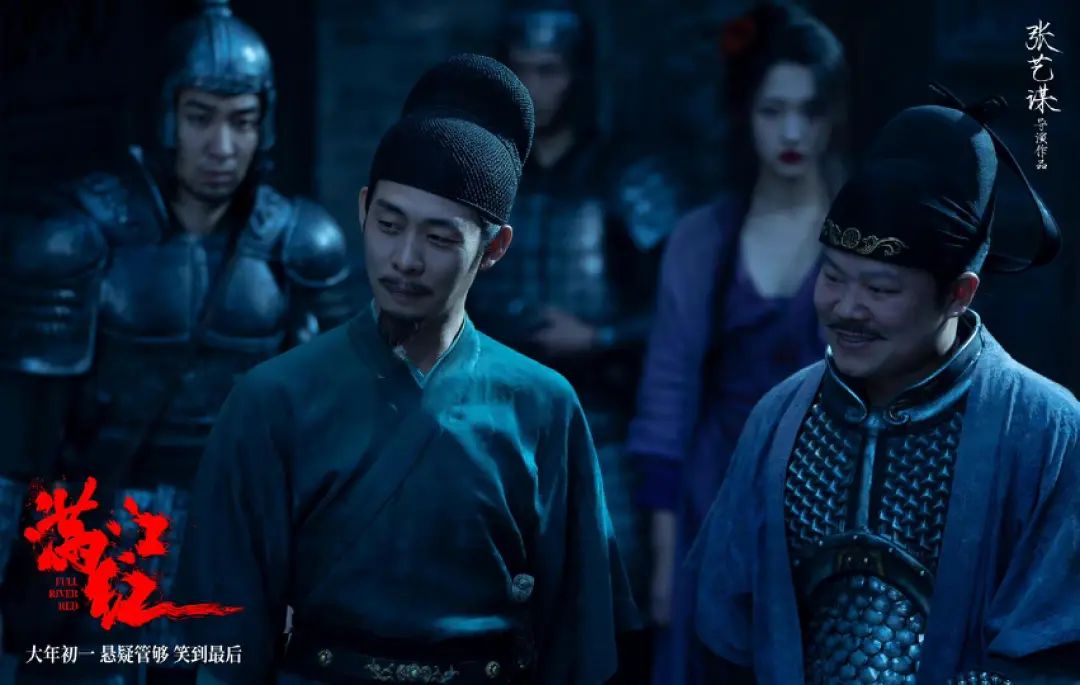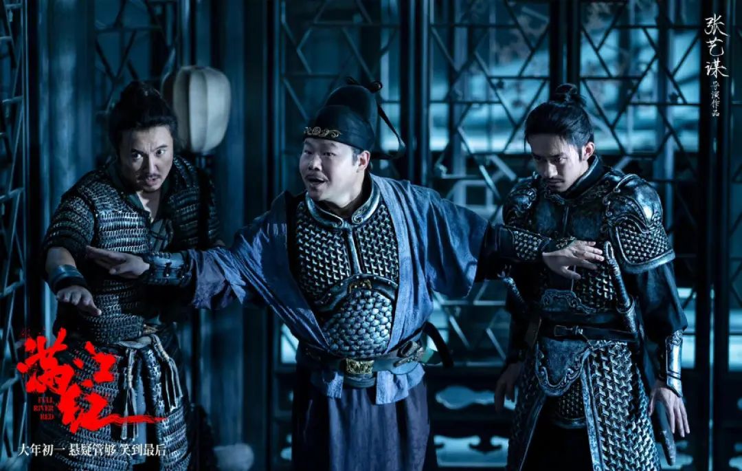 如果老谋子只是单纯地带给我们一部悬疑片,我们可能也会被其中的局中局所震撼,但《满江红》的剑走偏锋在于用喜剧演员和幽默情节去讲一个悬疑历史片。