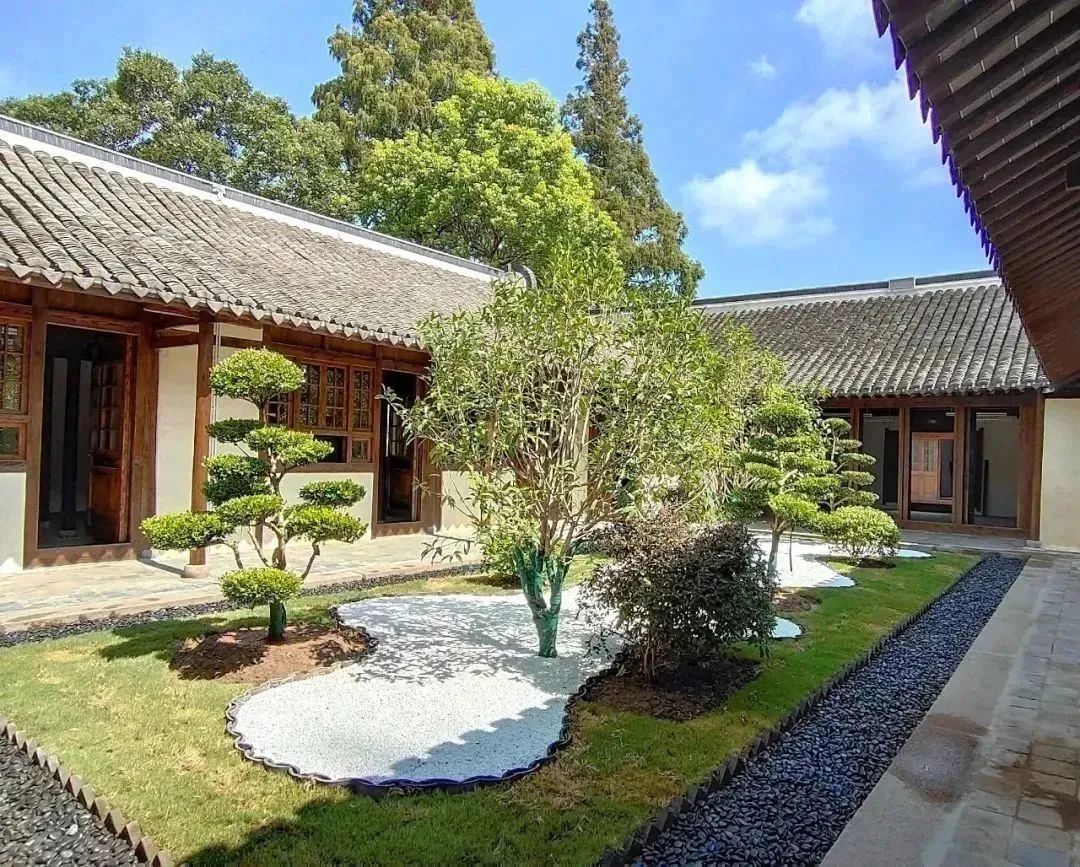 纵观宅邸,东、西、北三面环以护宅沟,白色粉墙面,硬山小青瓦屋顶,部分房屋山墙做观音兜,属于崇明典型的“独宅独水”式民居。主要屋堂坐北朝南,四进三院式砖木结构,拥有“四汀宅沟”类型住宅内最高的“四进三场心”形制。