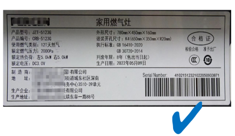 (3)检查包装和铭牌标志,综观产品外观判定整体质量。优质燃气灶具产品通常具有外包装材料结实、说明书与合格证等附件齐全、印刷内容清晰、产品整体结构稳固、份量较重、板材较厚、加工精良、边角处光滑无毛刺等特征。每台灶具主体贴有清楚的铭牌,标注出生产厂名、型号、适用气体及压力、热负荷及生产日期等信息。建议消费者选择口碑好、知名度高、商品质量和售后服务等方面有保障的产品,千万不要购买"三无"产品。