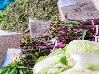 各种新鲜的蔬菜,没有超市里精美的包装,就这样散落着售卖。