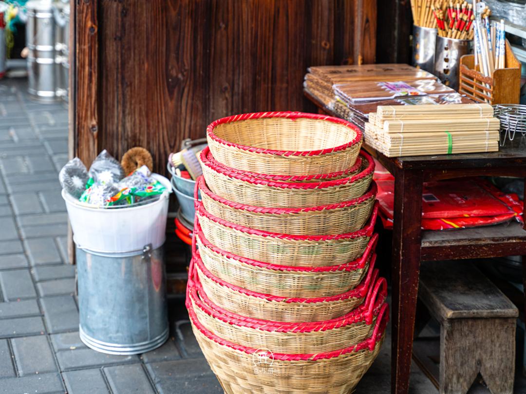 一些日常生活用品,琳琅满目。腌制咸菜的缸,手工编织的藤蓝,这些都是许久未见的物品。