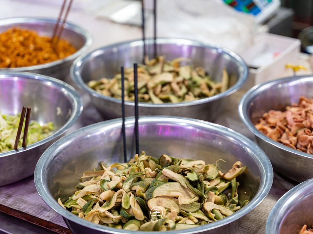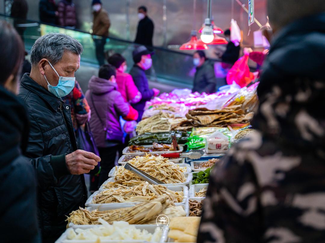 来南门坛上,怎么能不逛下菜场。一眼望去,火红的红灯笼,大大的福字,熙熙攘攘的人流,满大街的腌制品。车水马龙,日日如此,满满的人间烟火气。